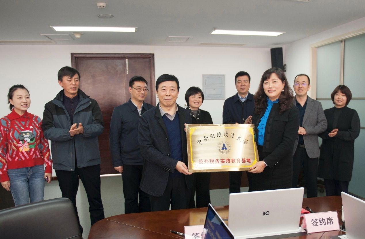 校党委副书记、纪委书记申祖武与大连市税务局党委委员、总经济师方芳签订实习实训基地和全面战略合作协议并授牌。