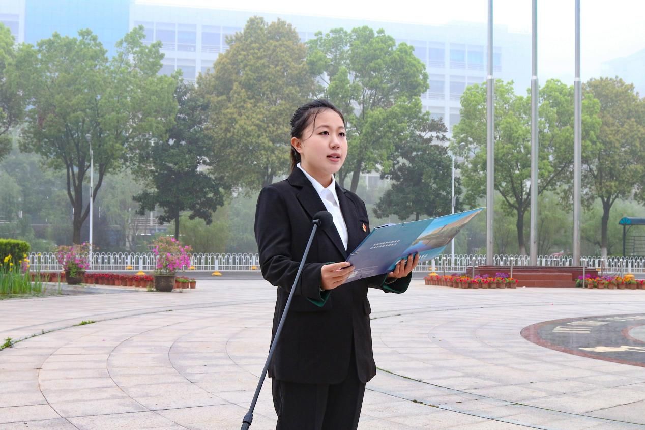 升旗仪式结束后,袁桂君同志带领全体党员重温入党誓词,誓言铿锵有力,彰显出对党忠诚、服务人民的坚定信念。